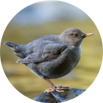 Dippers are unique songbirds adapted to an aquatic lifestyle, found near fast-flowing rivers and streams. They have dense plumage that keeps them warm and dry underwater, and they can “walk” along the river bottom to forage for insects and other invertebrates. Dippers build domed nests, often placed on rocks near or overhanging water.